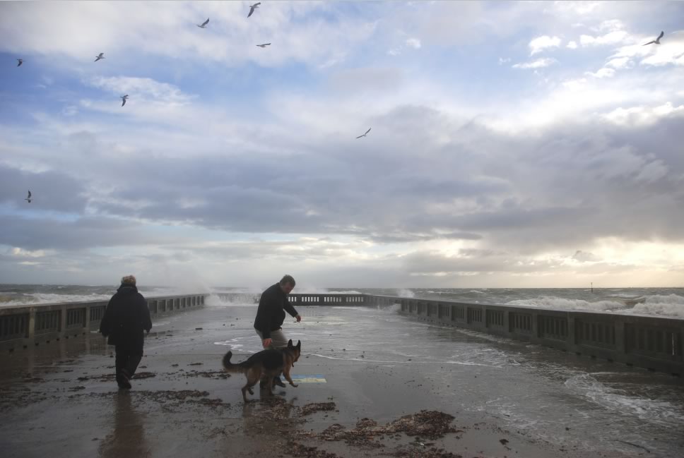 Hannah, my friend Sue and I ventured down to Brighton beach on Sunday afternoon amidst a fantastic Melbourne storm. The sea was lashing against the coast in the sort of scenes usually preserved for the 6 pm news. It was fantastic to be amongst so much water and to see the sea so alive. My plans for a leisurely swim now tucked neatly away in my speedos, Hannah and I braved some of the lapping surf as all good boys and their canine companions must do. Thanks to the generosity of some good camera wielding people on the beach, Bianca and Silvia Voigt, I have included a couple of snaps of quieter parts of our adventure.
